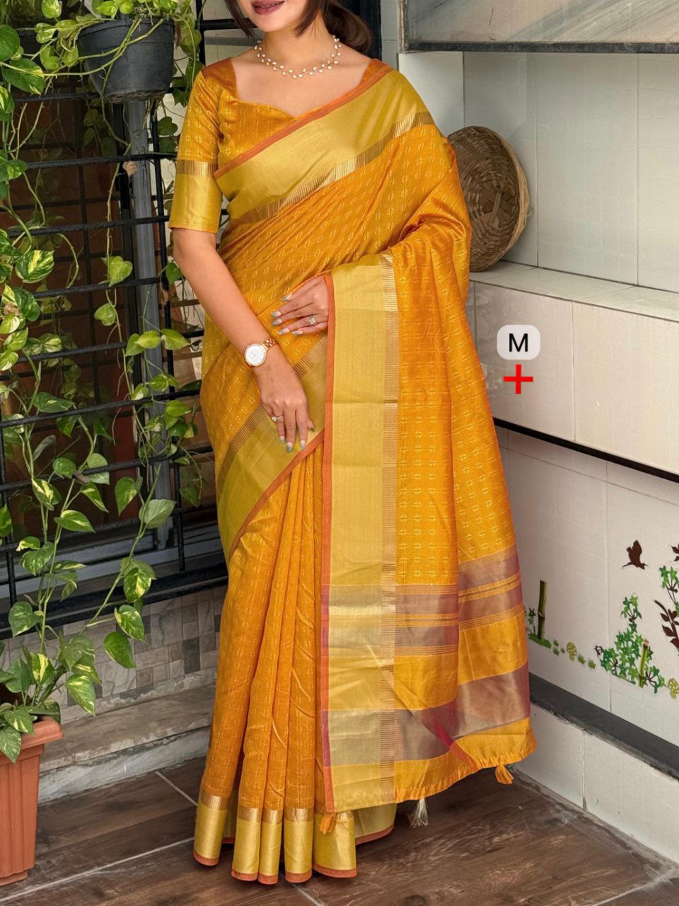 *Design- Parul**A simple solid colored causal wear saree with touch of zari weaving jacquard**Product details**Fabric-**Saree- Assam silk**Blouse-Assam silk**Size-**Saree- 5.5mtr**Blouse-1 MTR**Pattern-**1-Zari weaving jacquard in saree pallu and border* *2 -zari weaved jacquard border in blouse**3-self jacquard weaving buttin saree**4-tussels in pallu**New MSP- 399+ship/-*D31