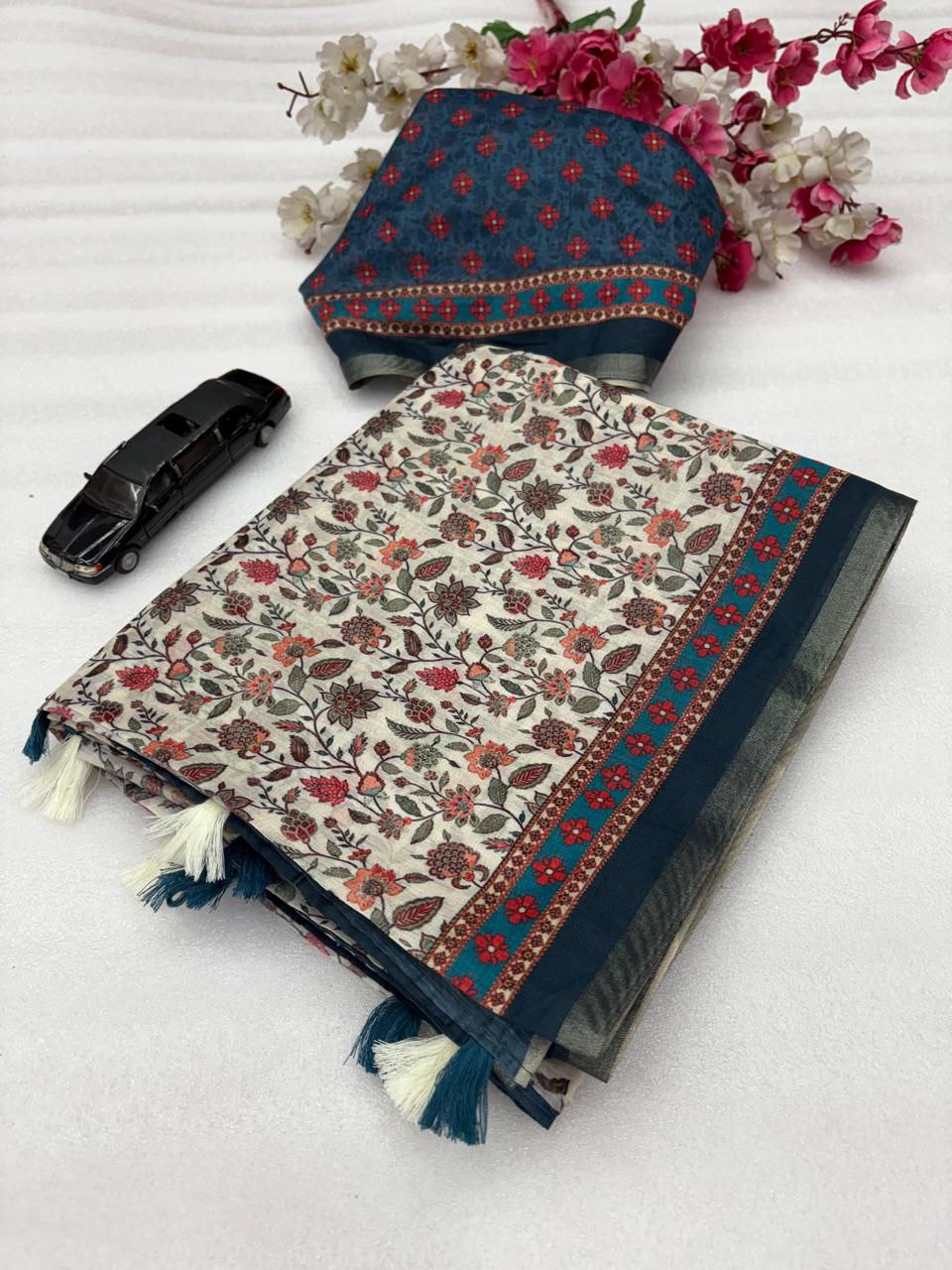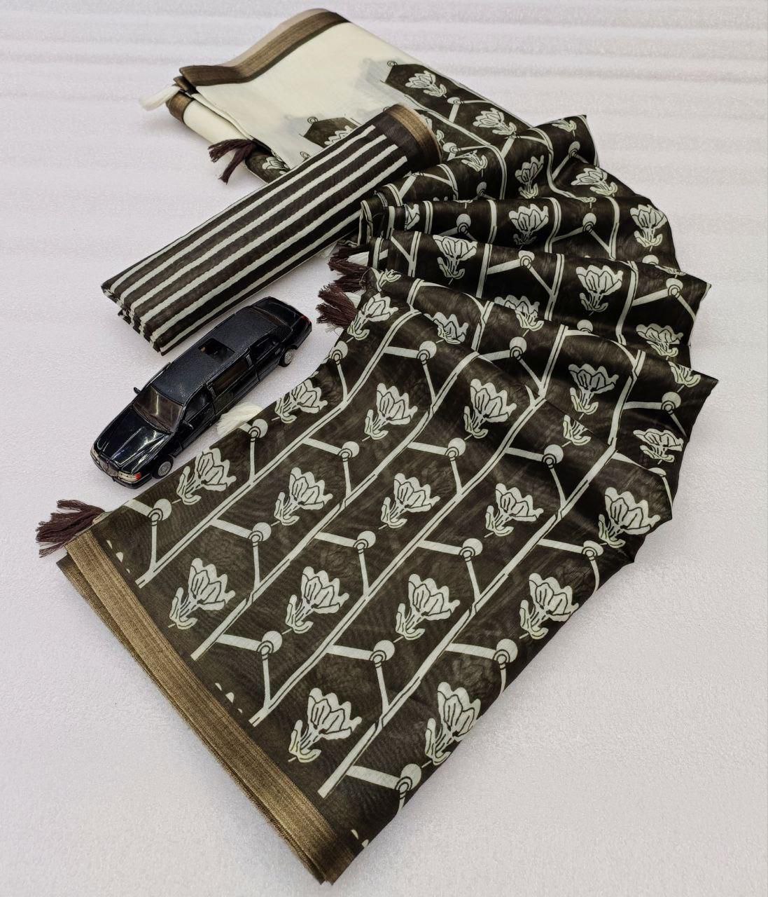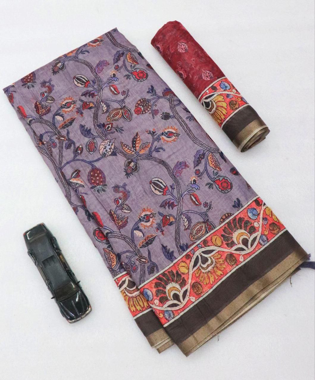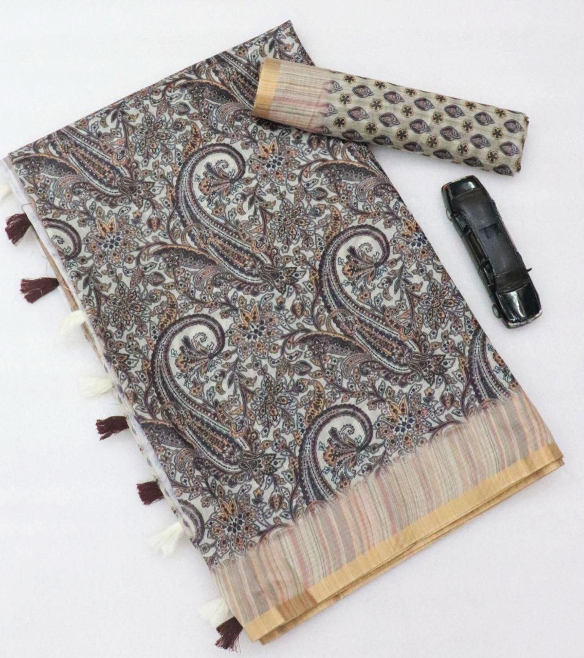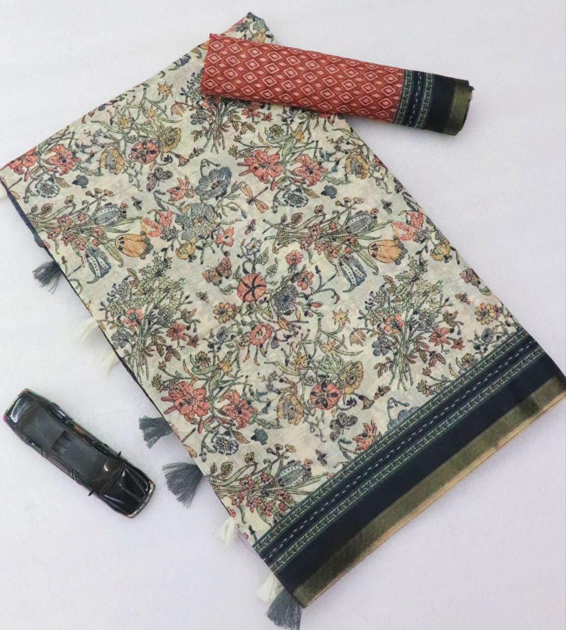 *Soft Chanderi Slub Cotton Digital Print Saree With Blouse*