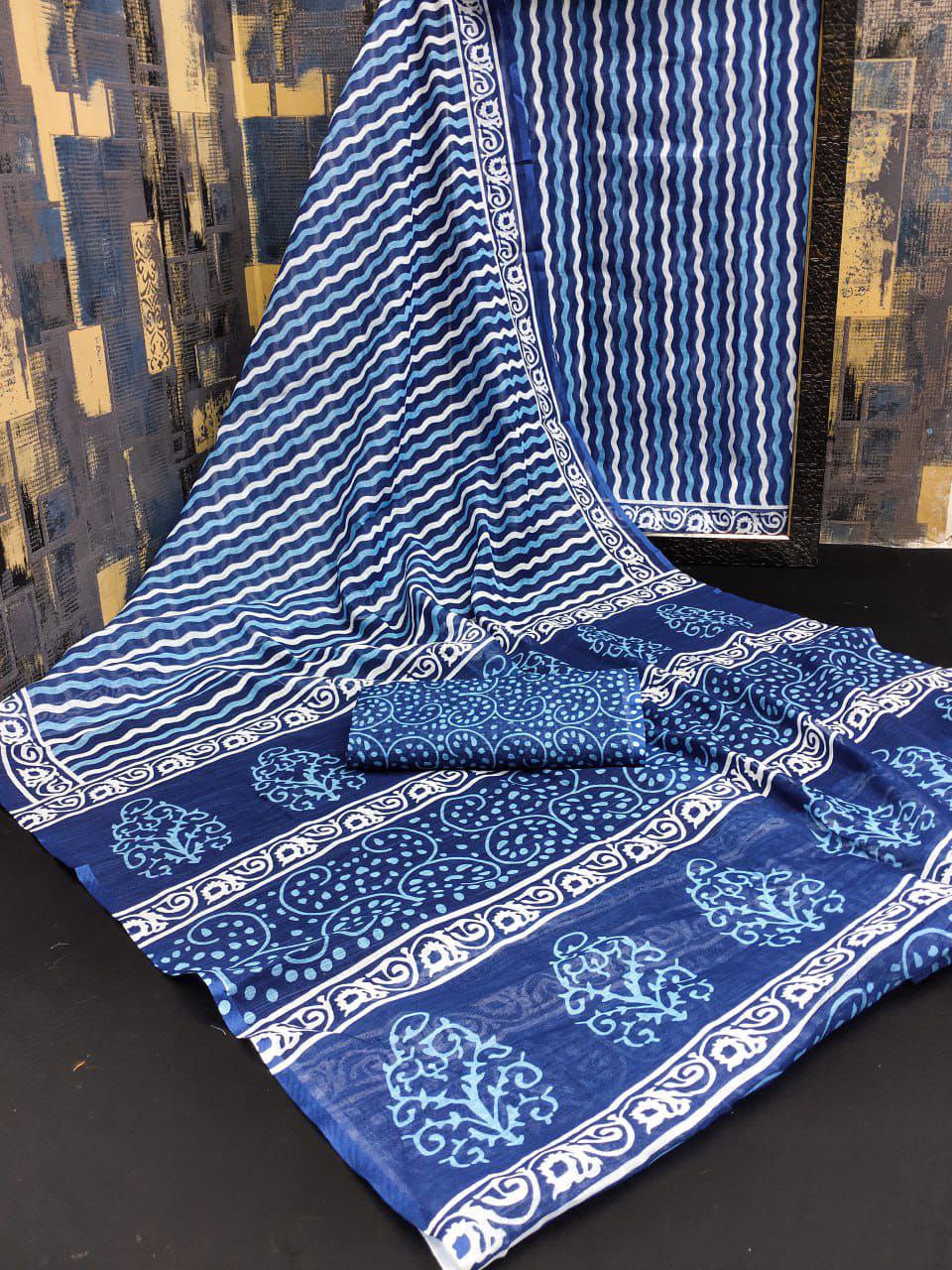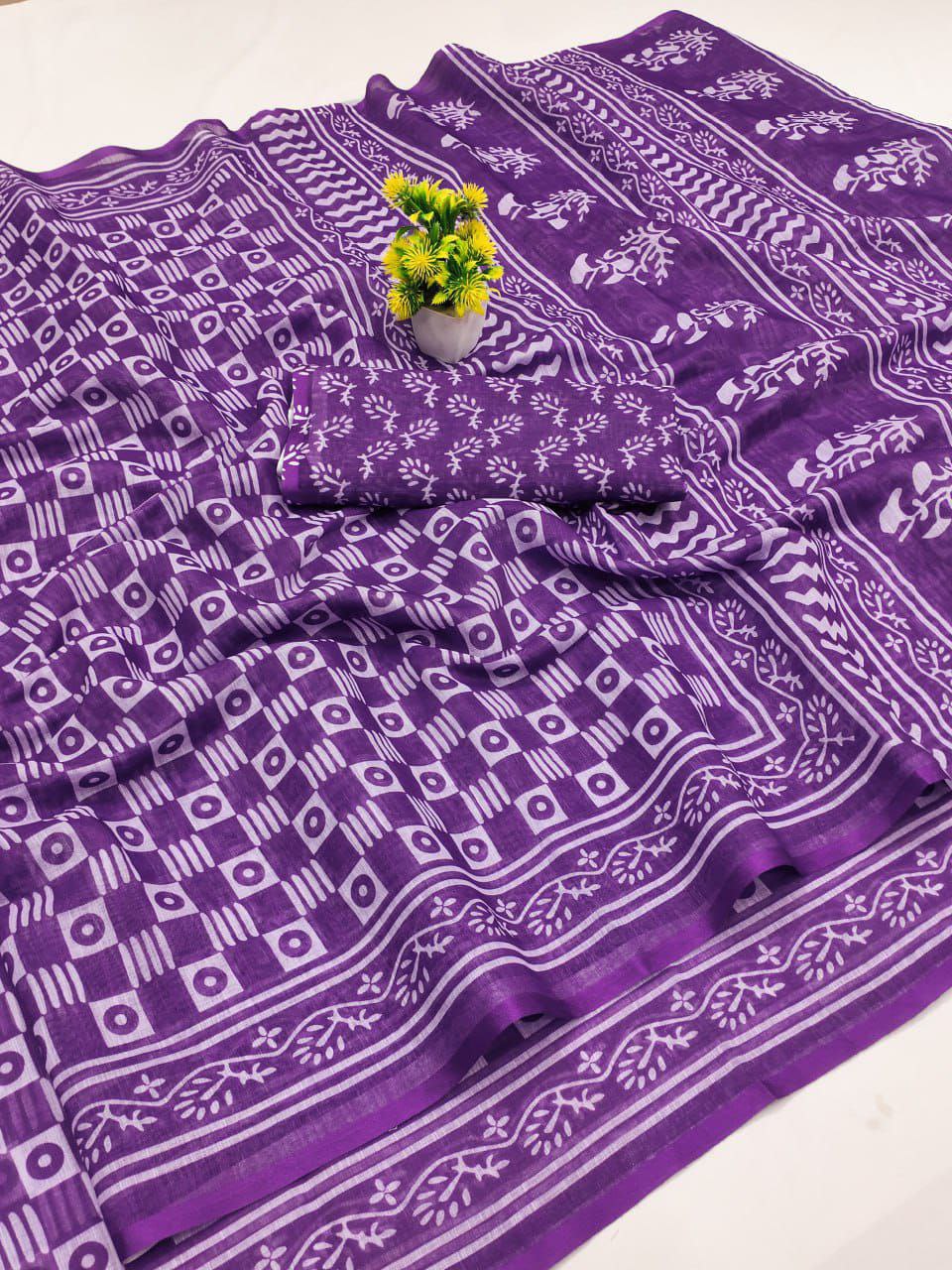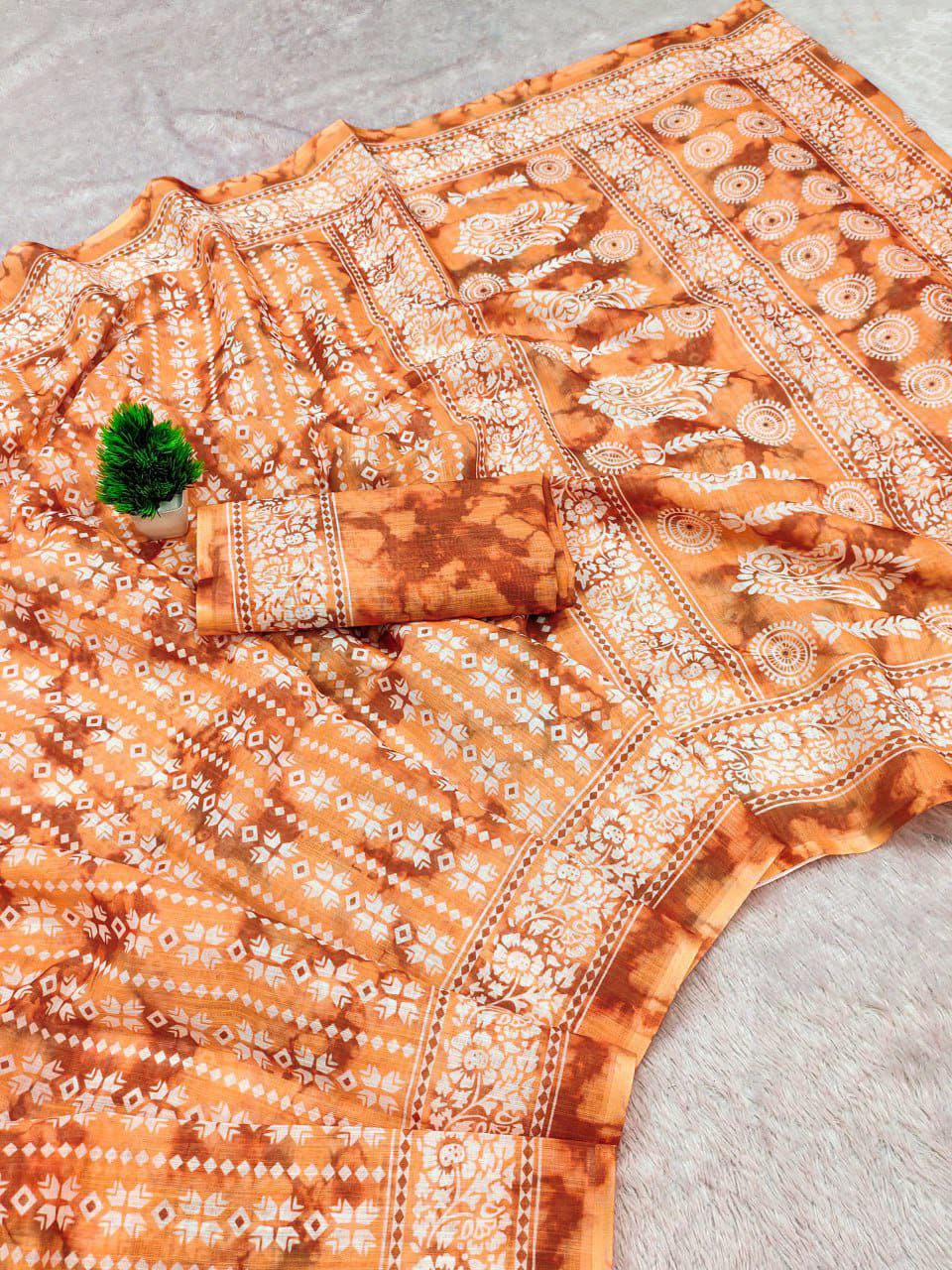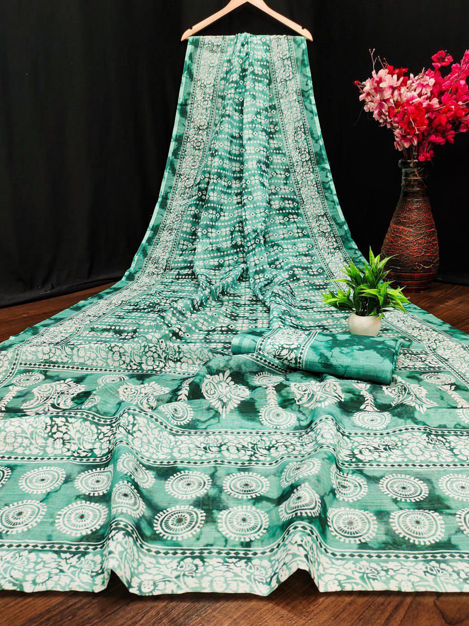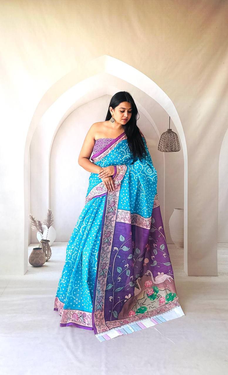 The soft, flowy Linen silk cotton sarees with all over Bandhej Digital prints with Silver and Digital Print Kalamkari pallu????