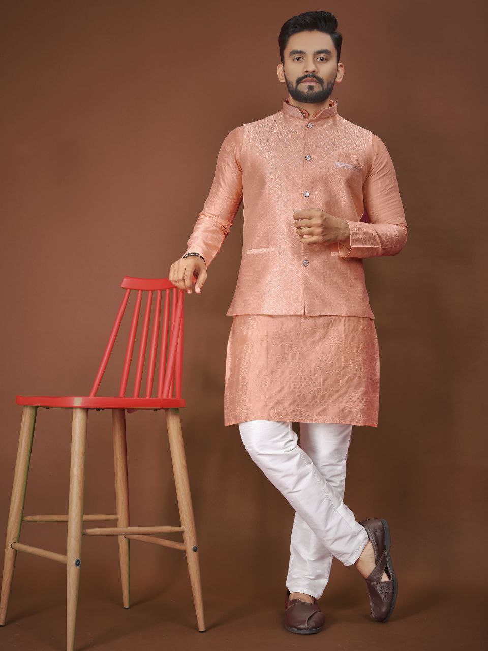 *JECQUARD GOLDEN ZARI WEAVING MEN'S KOTI KURTA SET*????????????