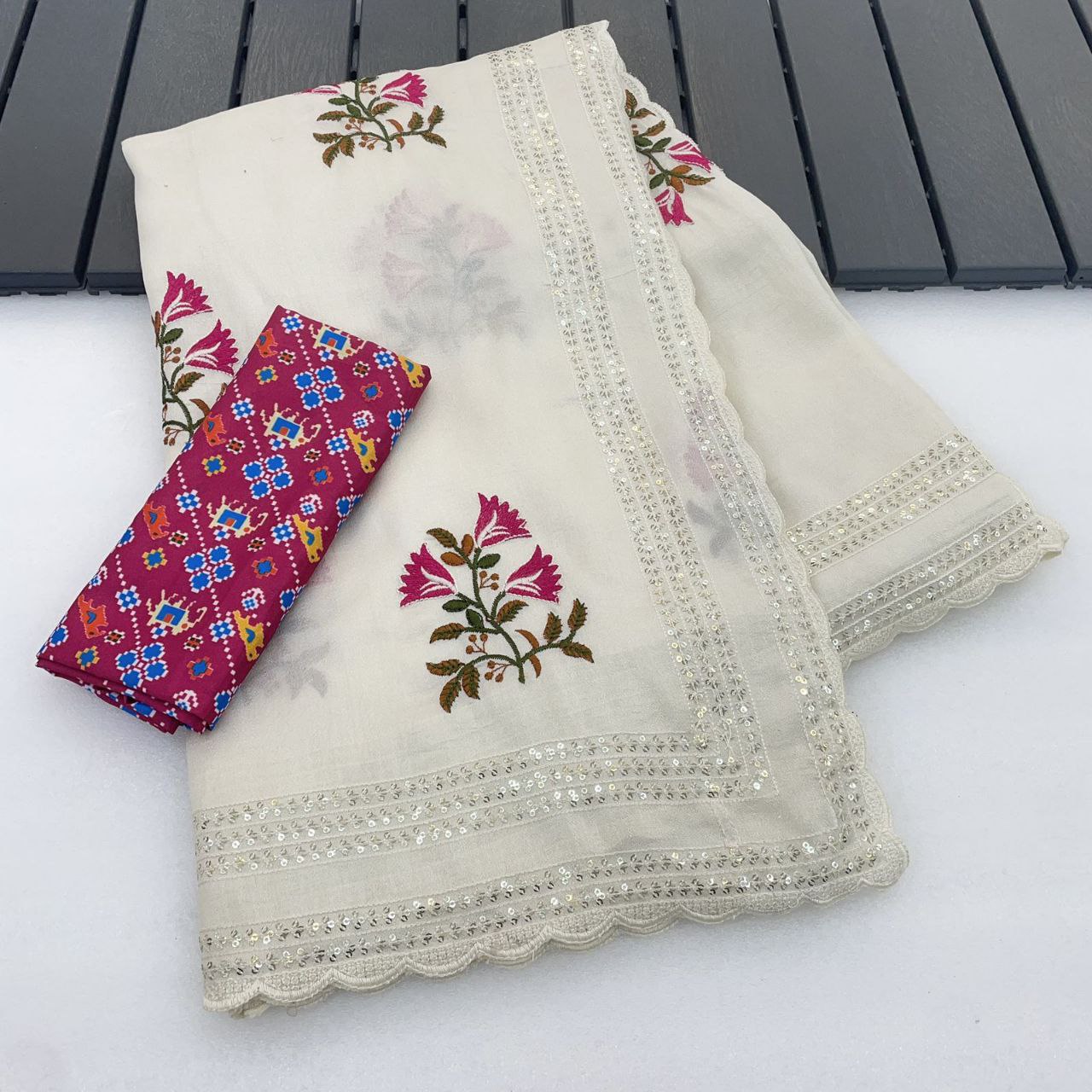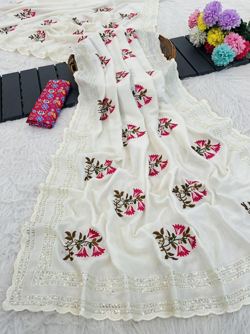 Embroidery thread work saree