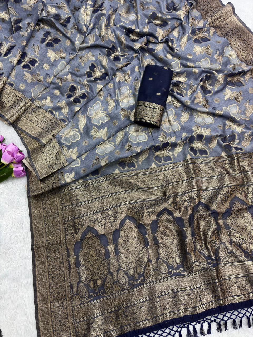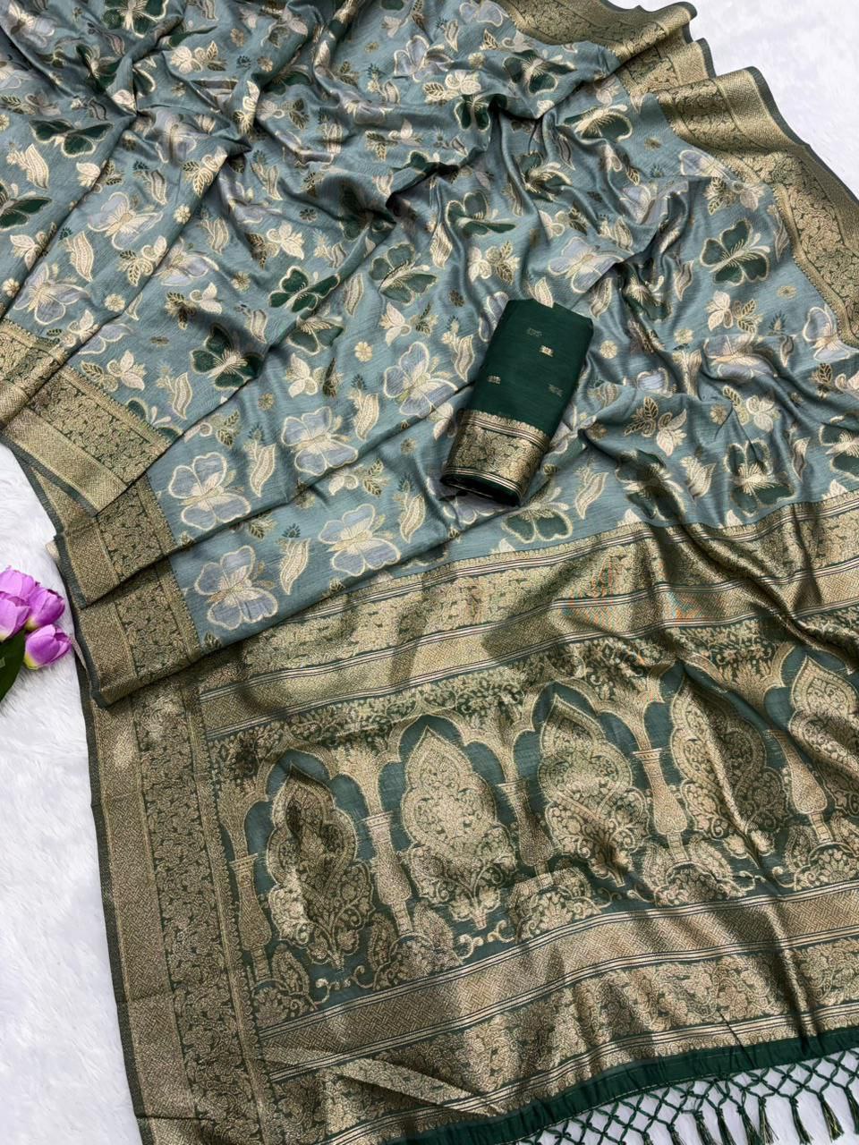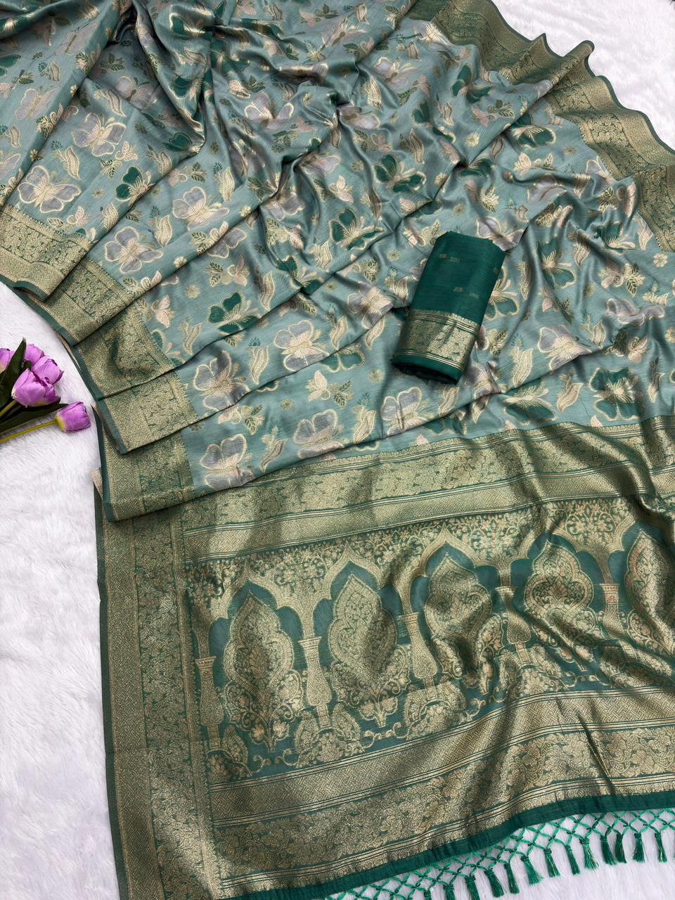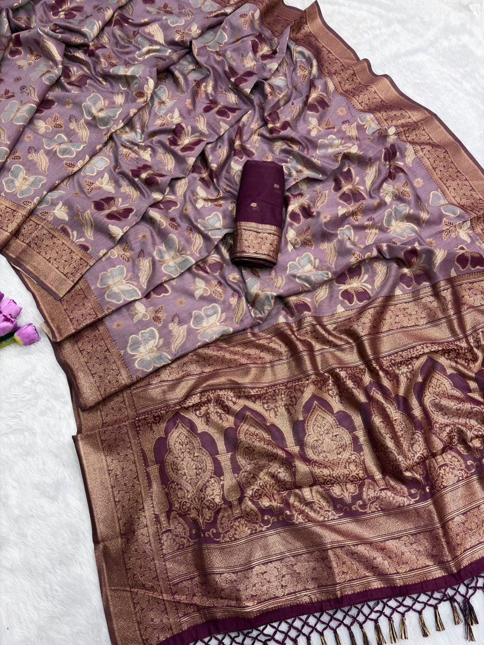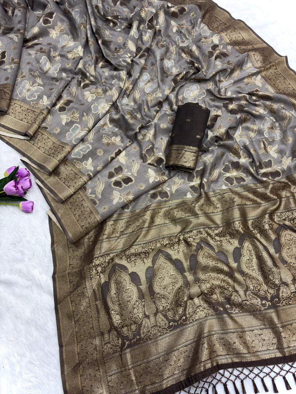*PATTERN- JAQUARD ZARI WEAVING SAREE WITH TASSEL*