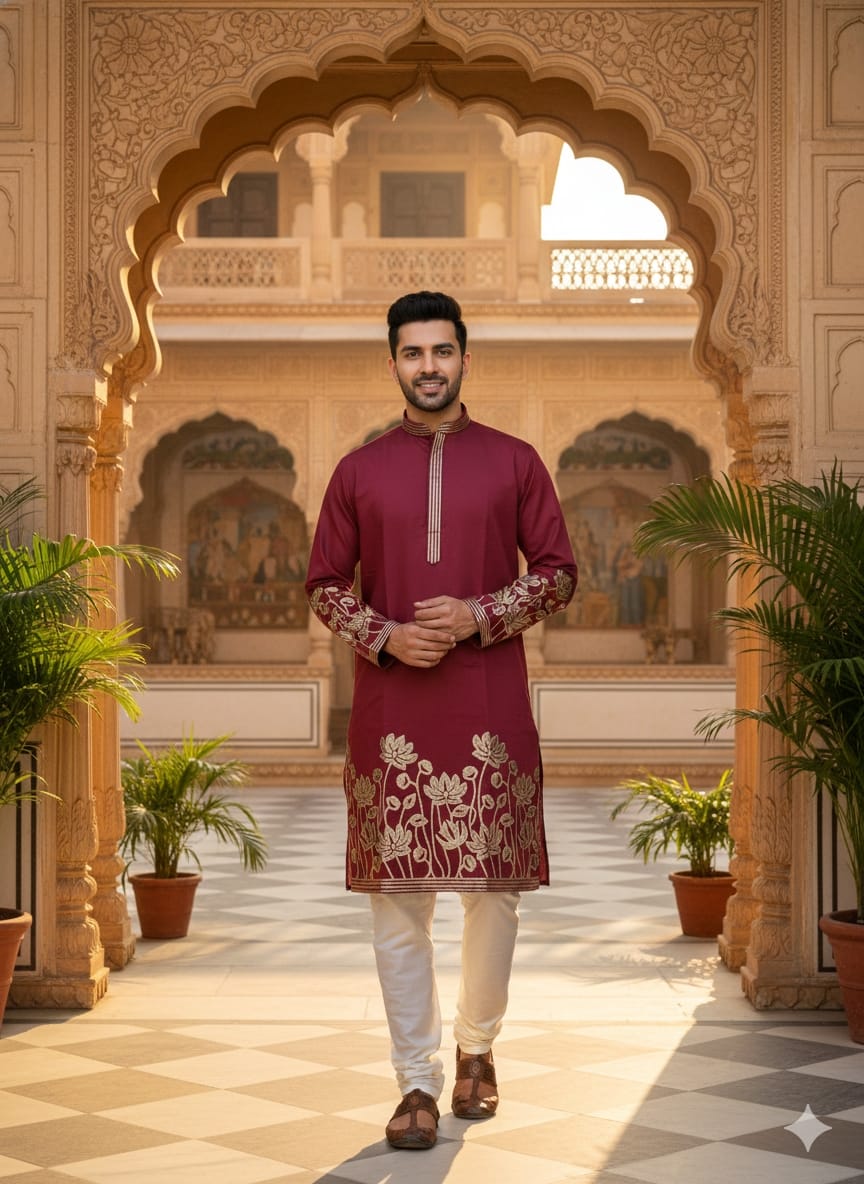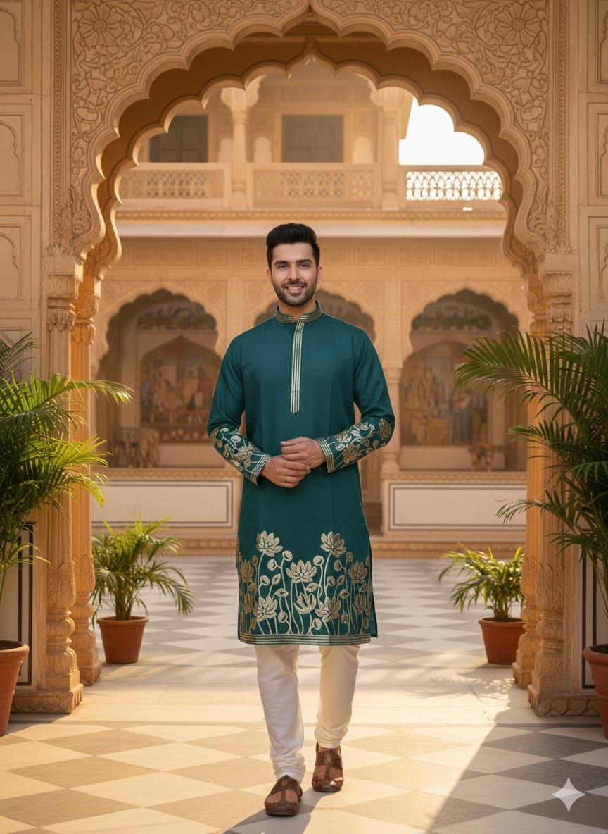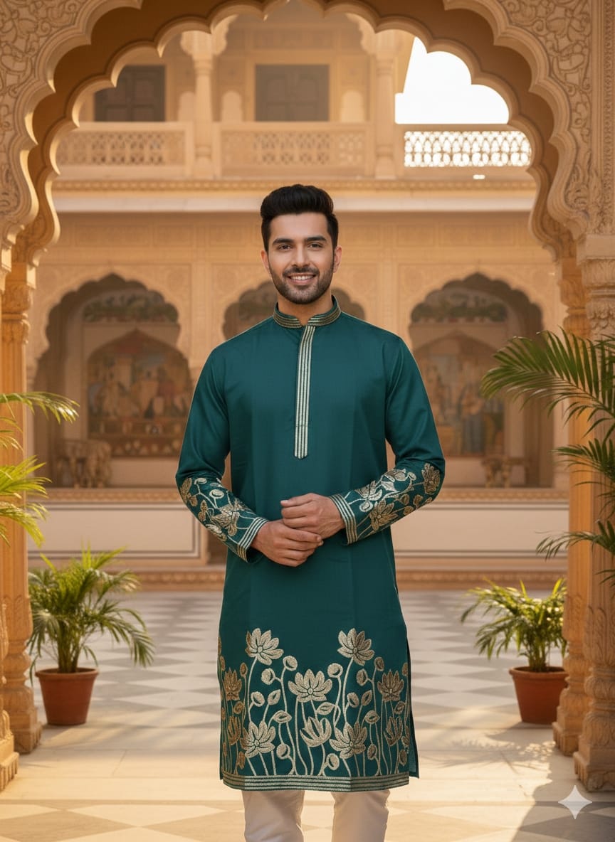 This design is made on celebrity silk fabric, with embroidered foil in gold work, which gives a very royal look...